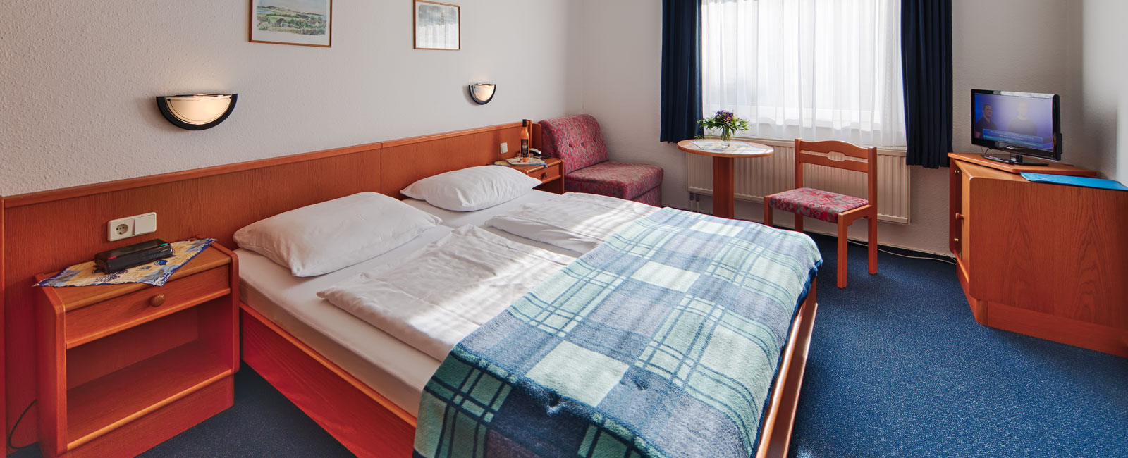 Die großzügig geschnittenen Nichtraucher-Zimmer sind modern eingerichtet und jeweils mit ein , einem Telefon, einem Radiowecker und SAT-TV ausgestattet. Eine Wlan-Verbindung steht kostenfrei zur Verfügung. Ein Zimmer ist behindertengerecht ausgestattet und für Rollstuhlfahrer geeignet